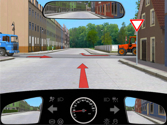 Ich muss den blauen Lkw durchfahren lassen