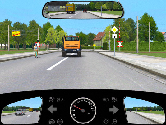 Unverändert weiterfahren, damit der Lkw gezwungen wird, wieder rechts einzuscheren